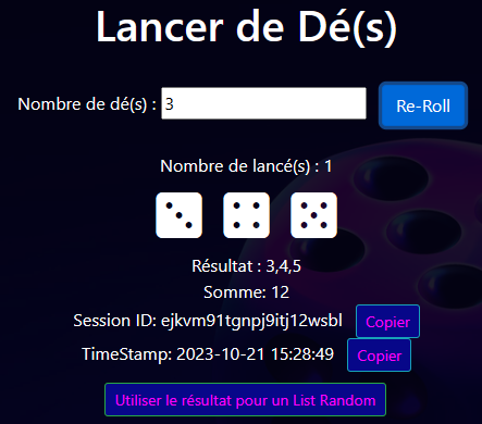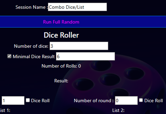 Vous avez aussi la possibilité d’entrée le nombre de rondes désirer manuellement.(La case du Lancer de dé doit être décoché et le nombre de dé à Zéro.)