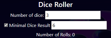 Une option est aussi disponible. La possibilité d’imposée une valeur minimum de résultats des dés. Le Lancer de dé mélangera alors les dés jusqu’à obtenir un résultat supérieur à la valeur déterminée sur la somme des dés.